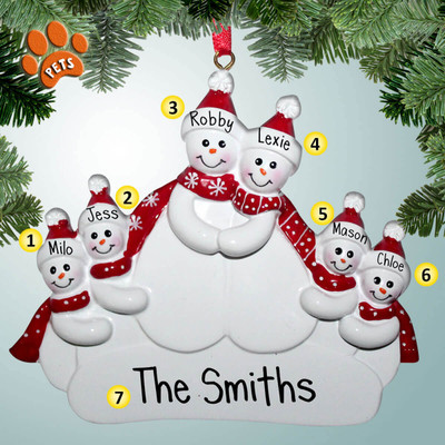 Personalized Snowman Family with Optional Pets - 6 Christmas Ornament
