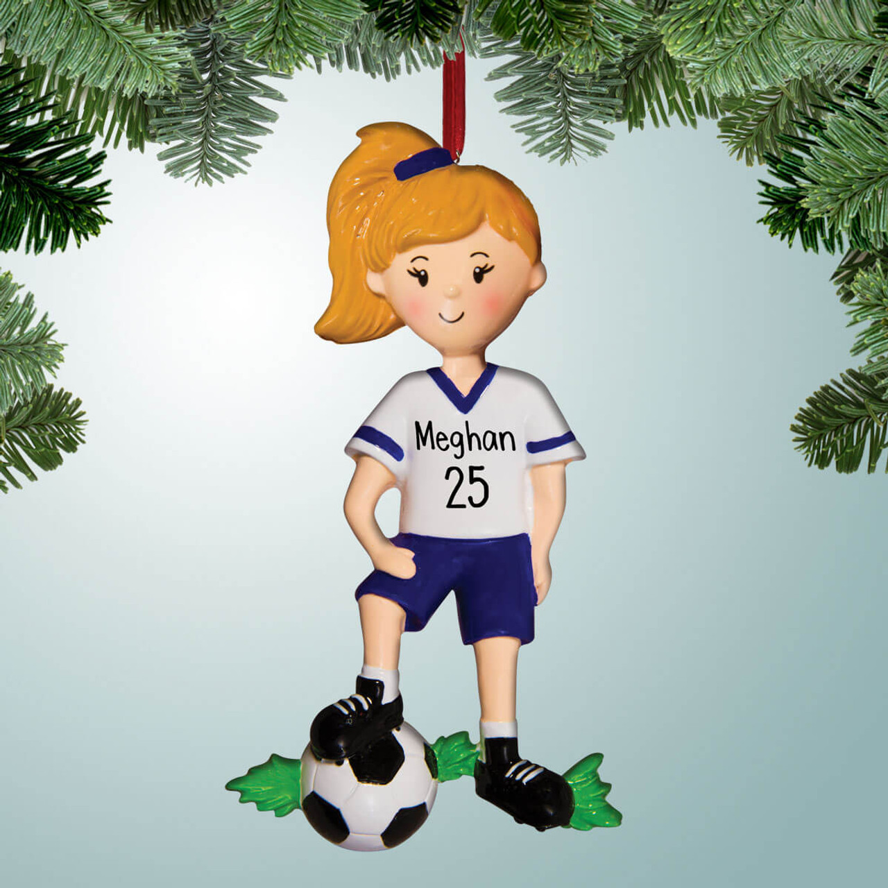Personalized Soccer Girl Posing with Ball Christmas Ornament