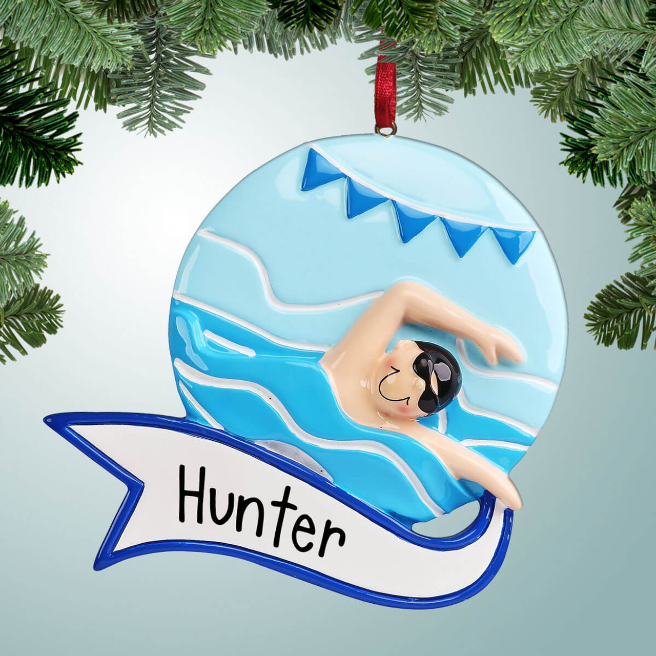 It's time to put on those goggles and jump in the pool! Whether you're swimming at your local pool, or competing on a swim team, this personalized Christmas ornament is perfect for the swimmer in your family!