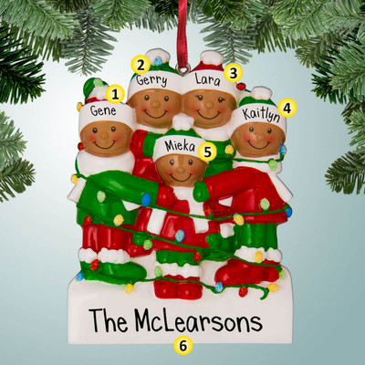 Personalized Tangled Lights Family African American - 5 Christmas Ornament