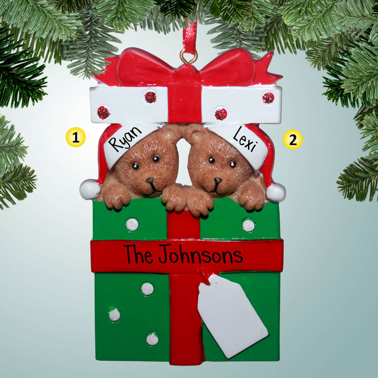 Forget the gloomy dens! This bear couple is already making plans to hibernate right here in this nice big present! If you could just show them the way to your tree, they can then enter a state of total relaxation! This personalized Christmas ornament is great for the couples that love to cozy up by the tree!
